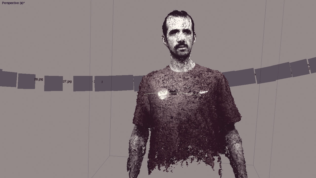 The video was really low quality, but somehow he filmed on a teal background, which worked an absolute treat and the model was really quite solid. The bottom half though was glitching out, an I thought to play that up, dissolve away his stomach and bring in these beams. I love how his face seems to be considering something, or maybe it's just the way I've framed it & it's reflecting how I'm feeling. I was scared to start this project again, I thought 12 ghosts was well and truly enough, but it's not & I'm committed to more - everyone tells a tiny story in some way, which is worth further investigation.